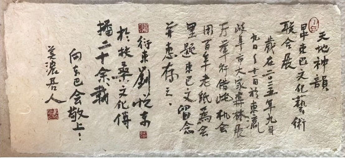 刘悦东先生用百年老纸为北京东巴文化艺术发展促进会参展提字留念