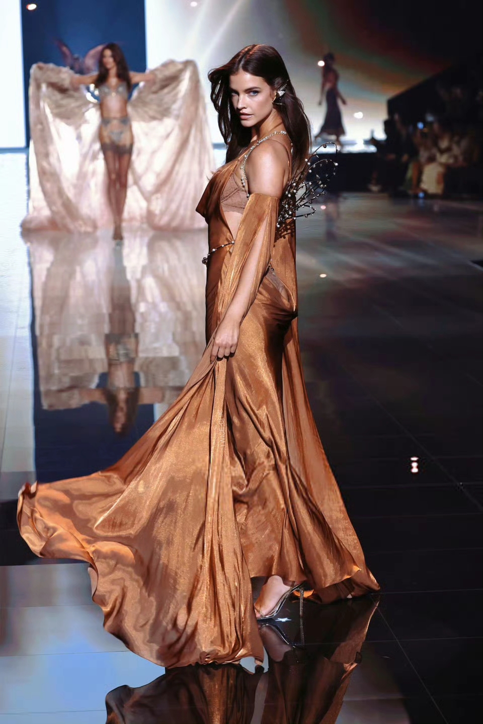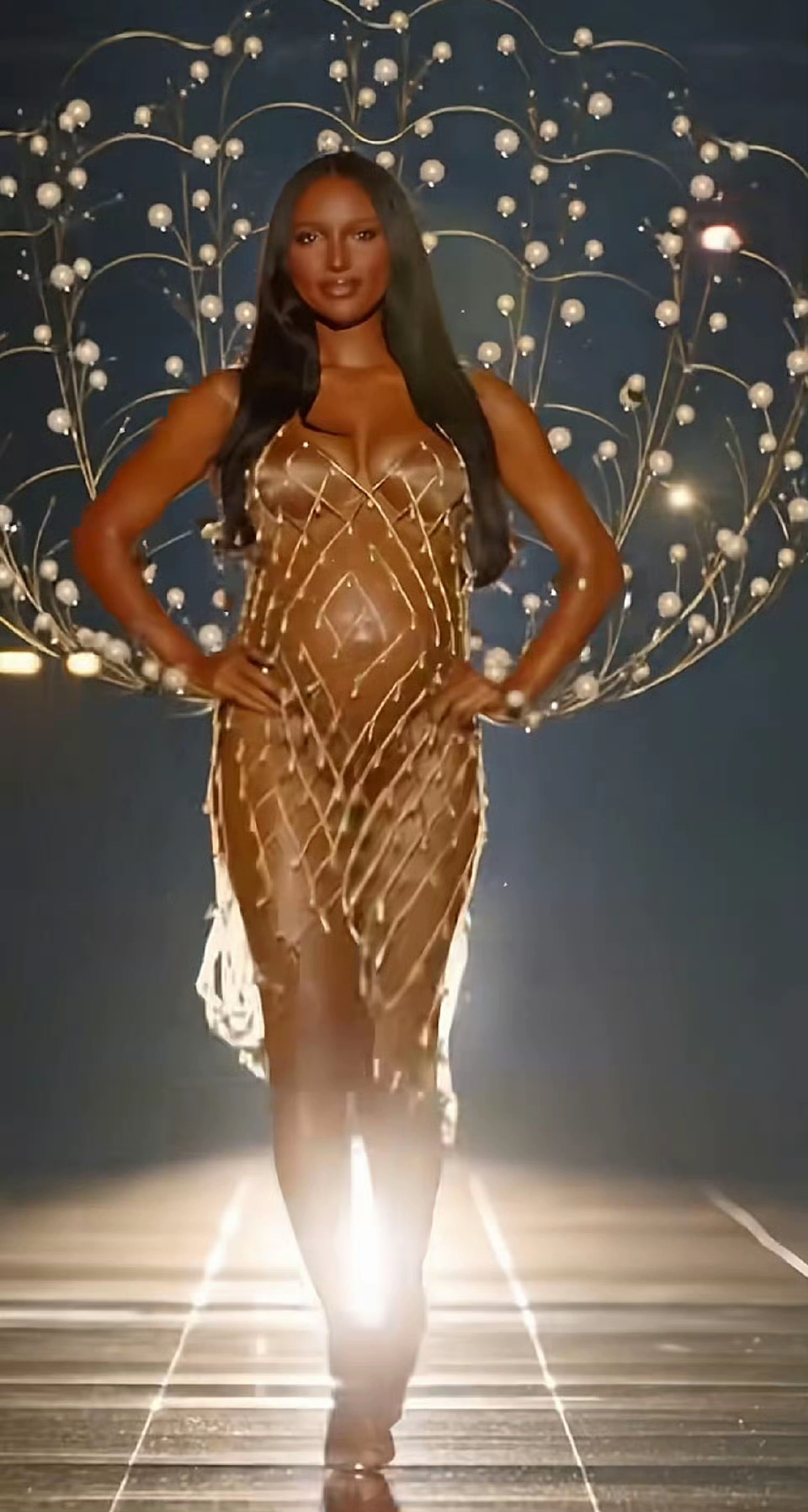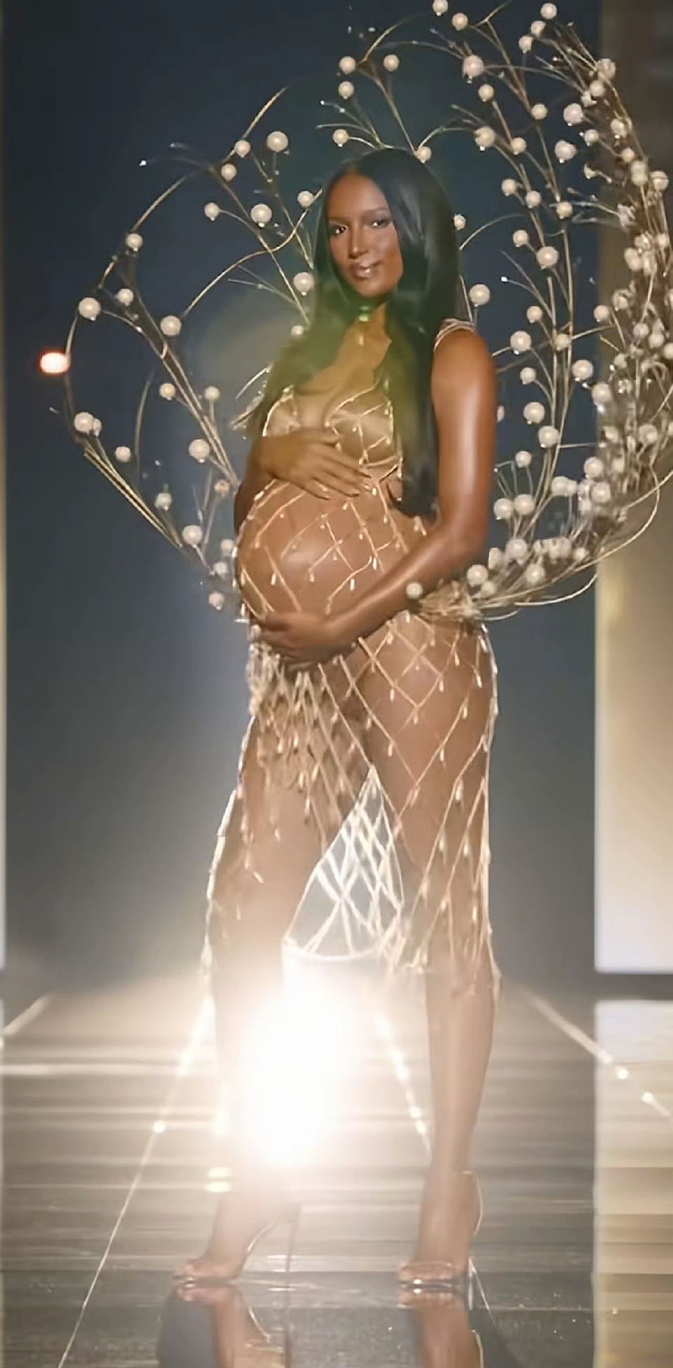 这可不是什么行为艺术,是维密官方亲自策划的历史性开场,金色流苏礼服、珍珠贝壳翅膀,聚光灯下她每一步都走得稳,孕肚曲线清清楚楚,一点没遮没掩。
