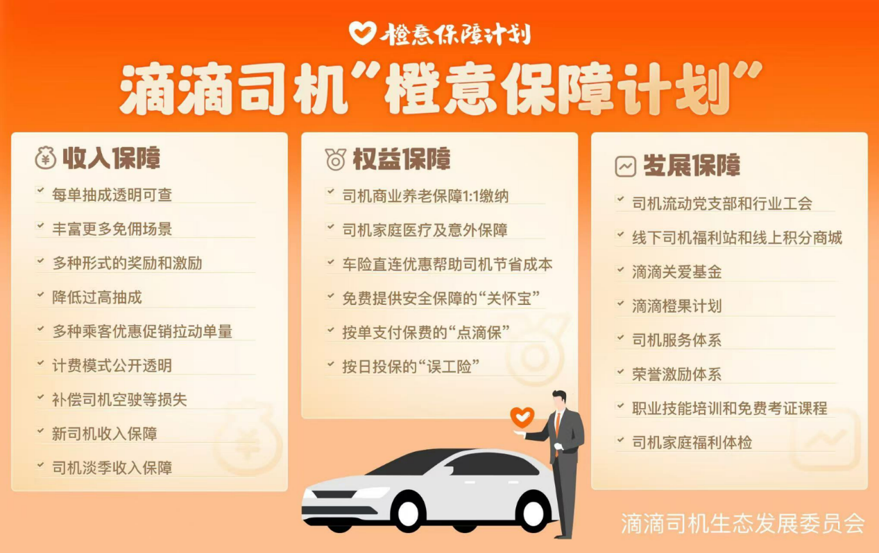 2024年,滴滴“橙意保障计划”再升级,除了持续通过养老、医疗保障为司机提供补贴,还通过车险直连优惠帮助司机节省跑车成本,通过“省险宝”计划帮助司机师傅们避免车辆出险,优化理赔成本。此外,新推出的极端天气损失误工保障,由平台补贴支持,满足司机多重保障需求。在重要节假日,滴滴也为司机组织了多场福利关怀活动,如“她D力量—国际妇女节女司机开放日”“清凉福利站”“百城司机中秋家宴”“荣誉司机表彰”“第十二届滴滴司机福利站”等。