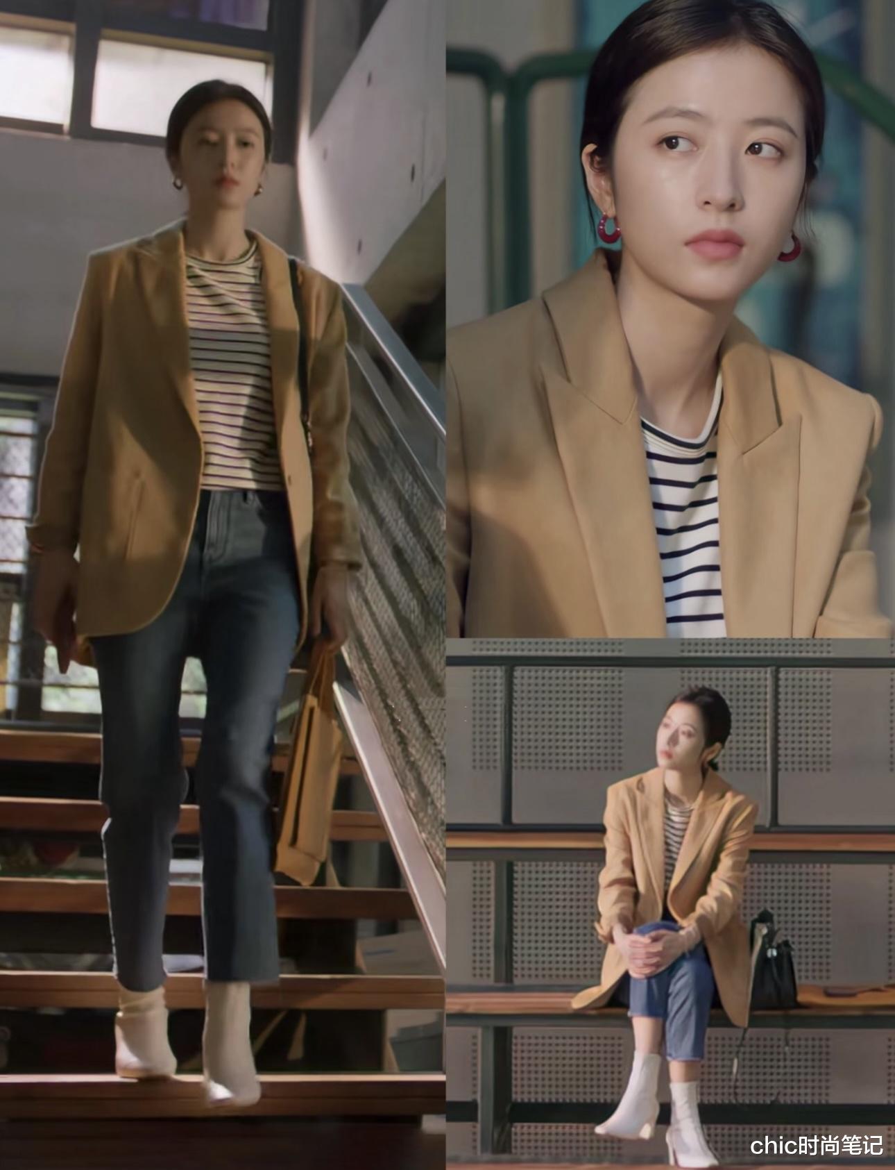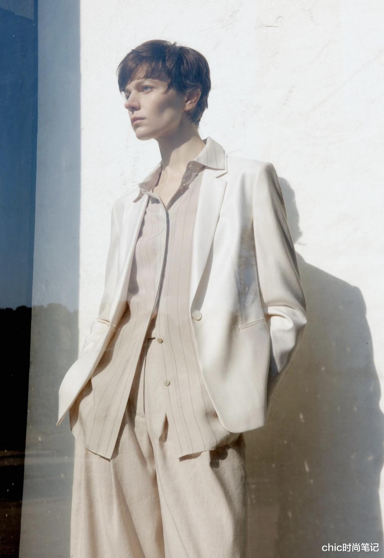 西服套装是偏商务风格的,但如果想要不那么正式的感觉的话,可以选择搭配牛仔裤或者休闲裤,通过质感西服和随性牛仔裤的混搭,展现职场松弛感。
