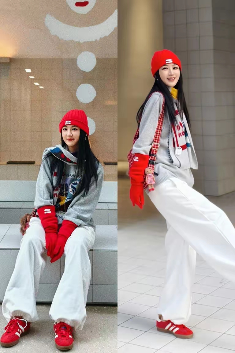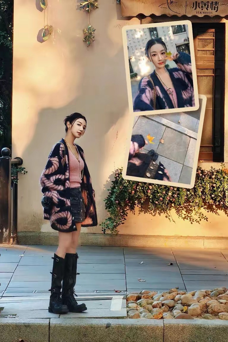 这种上宽下窄的搭配技巧,适合身材,尤其是苹果身材,更是必选的造型搭配,薇娅这套开衫毛衣,搭配粉色露脐打底,既保暖又能展显出小蛮腰!