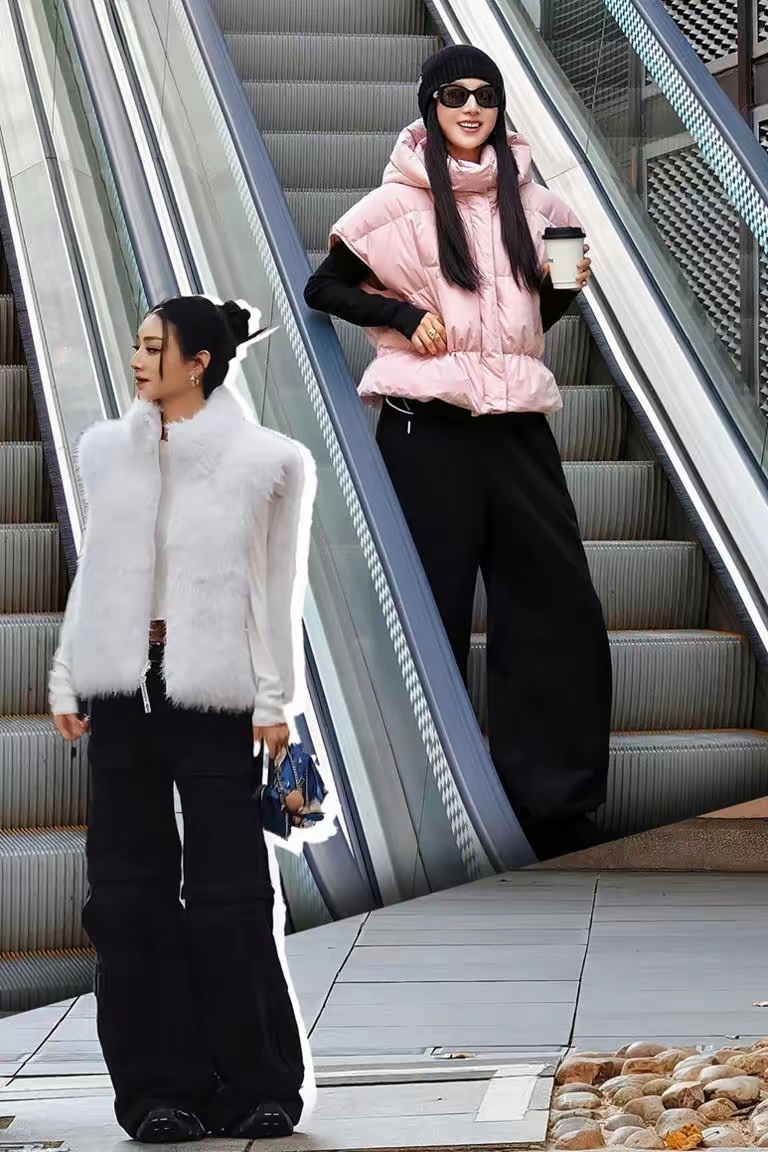 无论是皮草马甲,还是羽绒服马甲,保暖性都是非常好的,它能使咱们身体有足够的保暖功能,还可以让你的胳膊轻松自在,是一件非常不错的单品!