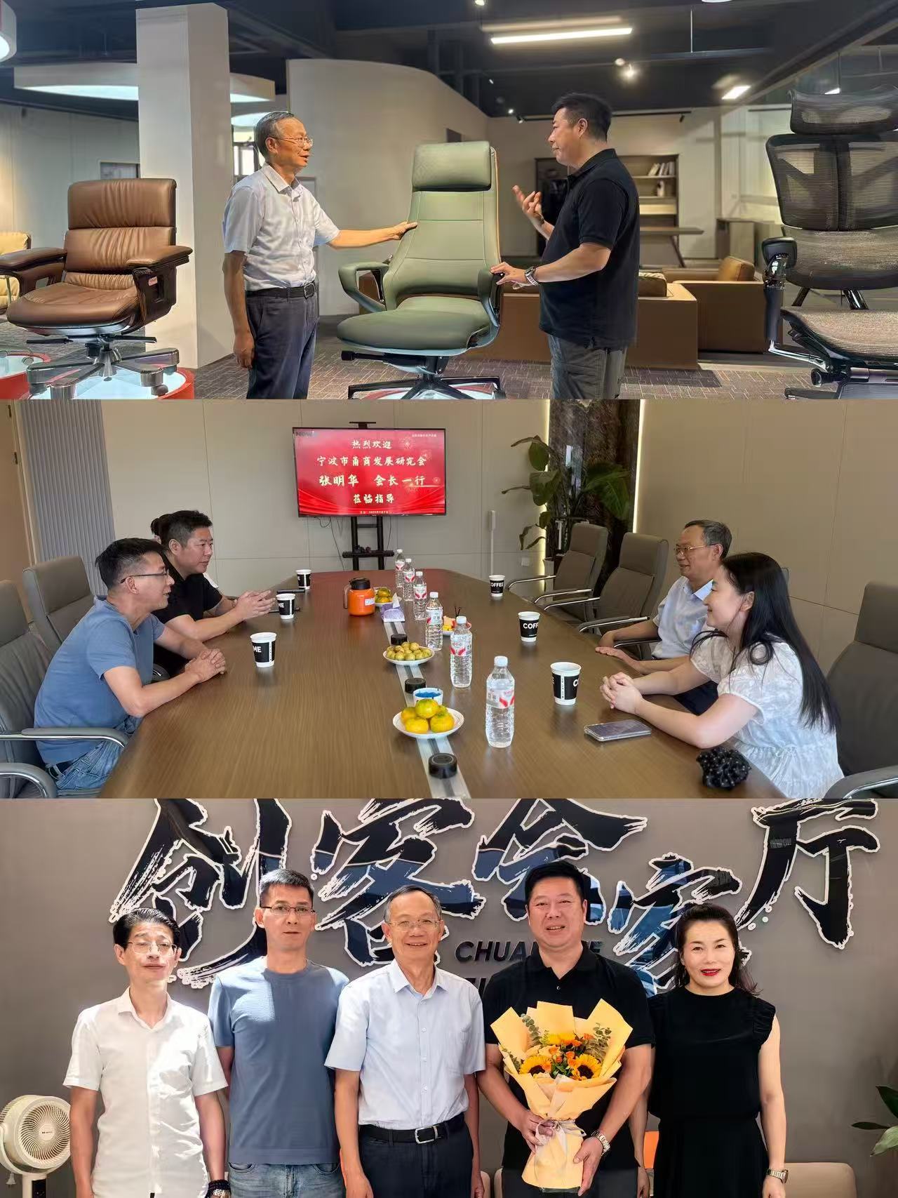 随后,张会长一行来到宁波市新颖办公家具有限公司,董事长童军立向张会长一行介绍到,新颖办公家具是一家集研发、生产、销售于一体的现代化办公家具企业,始终秉持"创新引领设计,品质铸就品牌"的理念,专注于为现代办公空间提供智能化、人性化的整体解决方案。张会长指出,办公家具行业是服务现代经济发展的重要配套产业,提升产品科技含量与设计美感是增强竞争力的关键。企业要紧盯市场需求变化,持续深化工业设计与技术研发,加快绿色低碳转型,同时,研究会也将积极帮助企业对接设计资源、拓展市场空间,共同助力宁波传统优势产业焕发新的生机。