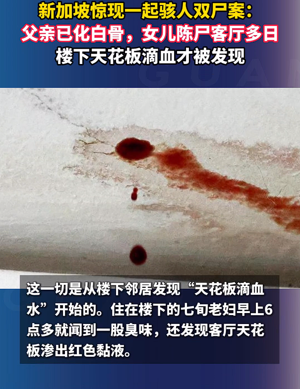 2025年10月6日,新加坡盛港东大道一座寻常组屋上演了一幕骇人悲剧:警方破门而入后发现,七旬父亲陈尸卧室化为白骨,47岁女儿徐娜(音译)倒毙客厅门边,两具尸体死亡时间相隔近一月。这一事件以“天花板渗出血水”才被邻居警觉报案,揭开了高知家庭背后令人窒息的生存困境。