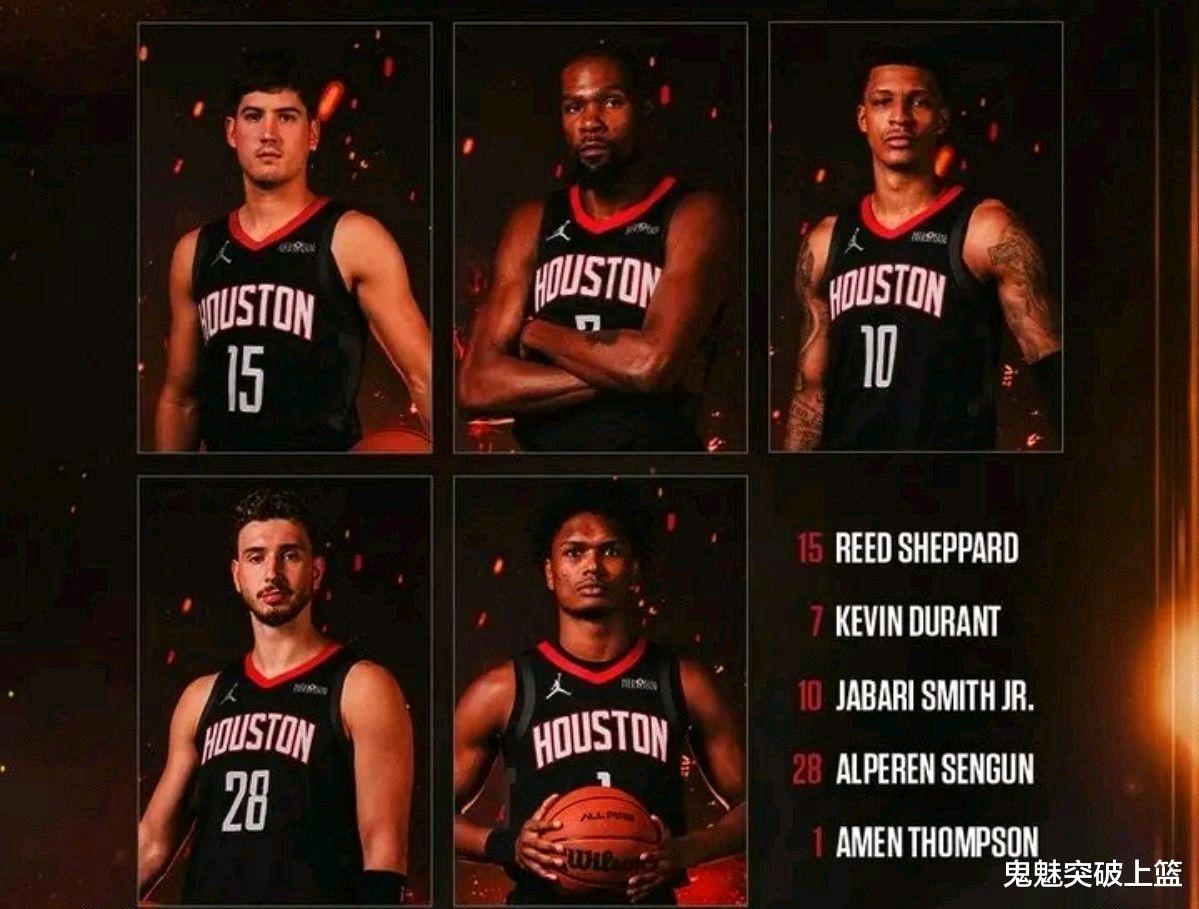 火箭首发五虎:凯文杜兰特+贾巴里史密斯+申京+谢泼德+阿门汤普森