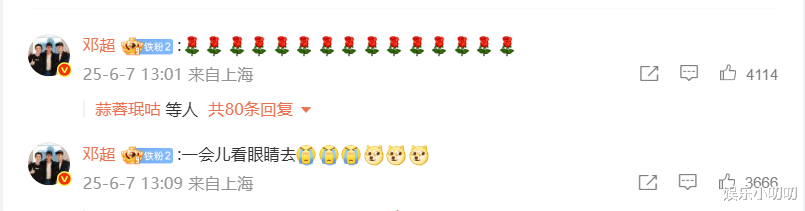 随后邓超现身孙俪评论区,先是送了一堆花花,之后对于孙俪爆料他爱哭鼻子这事,邓超给出的回应是,一会去看眼睛去。咱就是说邓超在什么时候也不能让梗掉地上,孙俪爆料他爱哭,他没反驳,一句去看眼睛就幽默的解释了自己有多爱哭,爱哭到得去看眼睛了。想象一下,孙俪和邓超一块生活应该挺快乐的吧。