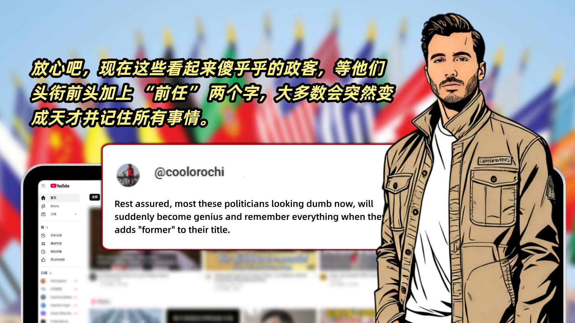 网友coolorochi表示:“放心吧,现在这些看起来傻乎乎的政客,等他们头衔前头加上 “前任” 两个字,大多数会突然变成天才并记住所有事情。”