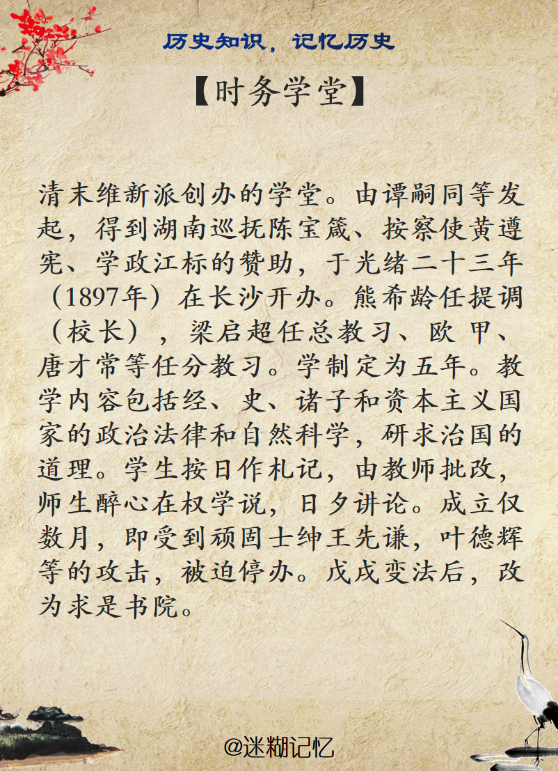 由谭嗣同等发起,得到湖南巡抚陈宝箴、按察使黄遵宪、学政江标的赞助,于光绪二十三年(1897年)在长沙开办。