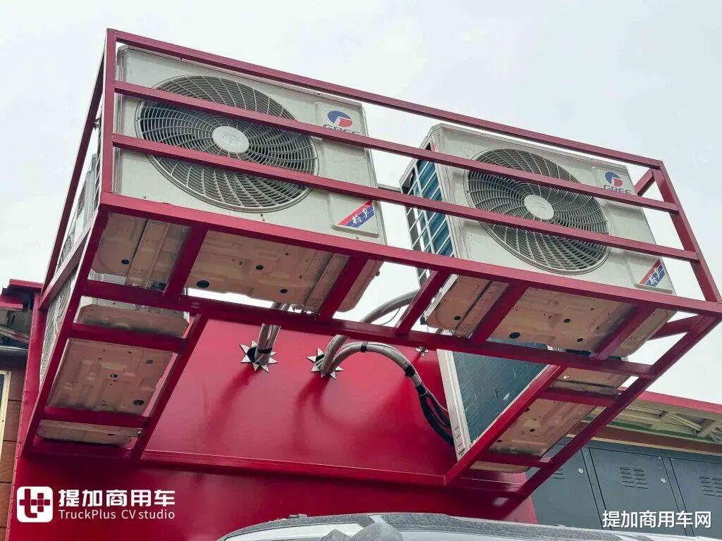 空调外机设计在驾驶室顶部的焊接支架上,正好利用了驾驶室上方的空间
