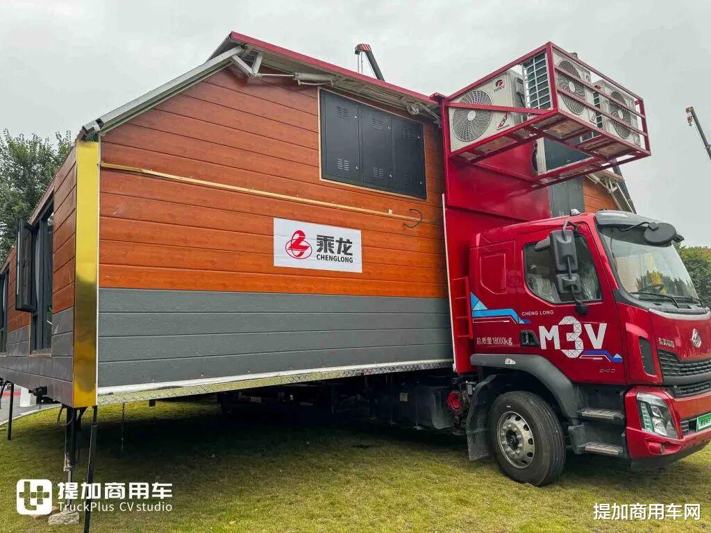 大会上,乘龙品牌展示了一台独具特色的移动宴席车。该车基于乘龙M3V中卡平台打造,车厢可实现多向拓展,展开后内部空间超过150平方米,真正实现了“车开到哪,宴席就办到哪”。今天这篇文章,就让我们一同深入了解这款车型。