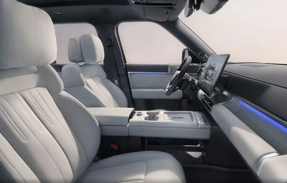 作为一款中大型SUV,钛 7 的车身尺寸为 4999×1995×1865mm(无人机版为 1956mm),轴距达 2920mm。这样的尺寸让车内空间十分宽敞,能轻松满足家庭出行以及行李放置的需求。车内采用 5 座布局,乘员舱有效车长 3310mm,得房率高达 70.9%,无论是前排还是后排,乘客都能拥有充裕的头部和腿部空间。即使是身高较高的乘客,在车内也能保持舒适的坐姿。