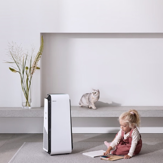 功能上,机身配备滚轮方便移动,电源线可收纳保持整洁,前置滤网支持水洗,降低了日常维护成本。滤芯卡扣结构让更换更顺畅。它支持App远程操作,用户可随时查看空气质量并调节模式,同时具备滤芯寿命智能提醒功能,保证长效运行。