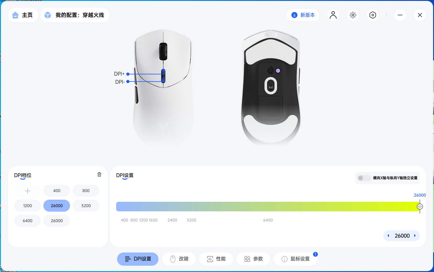 在DPI配置界面,玩家可以自由调节DPI,共有7档可调节,满足不同游戏场景下的需求。参数设置界面更是提供了丰富的选项,包括Windows指针速度、滚轮速度、按键防抖延迟等,让玩家能够根据自己的喜好和习惯,打造出最适合自己的游戏鼠标。