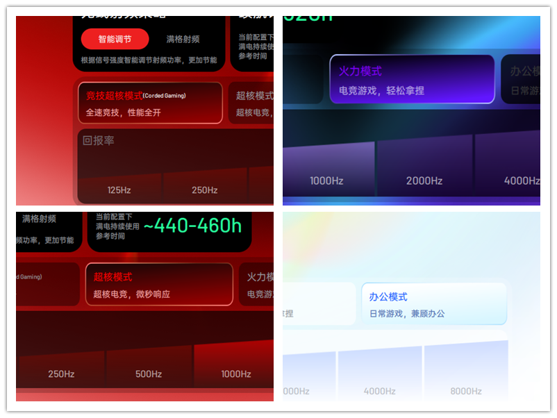 标准版3398(高定版3950)性能再度升级,开放狂暴竞技模式,具备市面上超强的超20000FPS全段扫描帧速率,搭配高回报率,带来超强的电竞跟手感。而且,它还是真超长续航的“巨无霸”,续航时长从原本的500小时大幅提升至750小时,即便在8K回报率下,也能拥有120小时的续航,无需一天一充,续航不虚标,让玩家可以尽情畅玩,无需担心电量问题。并且按键抬起、按下消抖延迟开放0-32ms可调。
