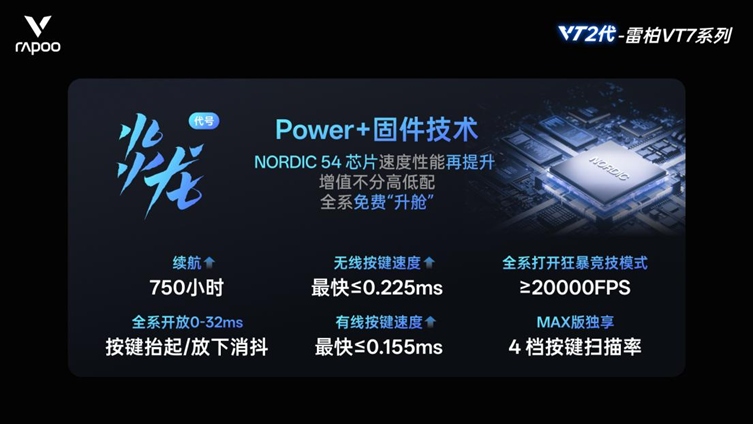 千万别小瞧了雷柏VT7系列电竞鼠标,它可不是市面上那些普通的游戏鼠标。它搭载了Nordic 54系列芯片,这一配置直接超越了当前业界的普遍水准,让它在性能上脱颖而出。