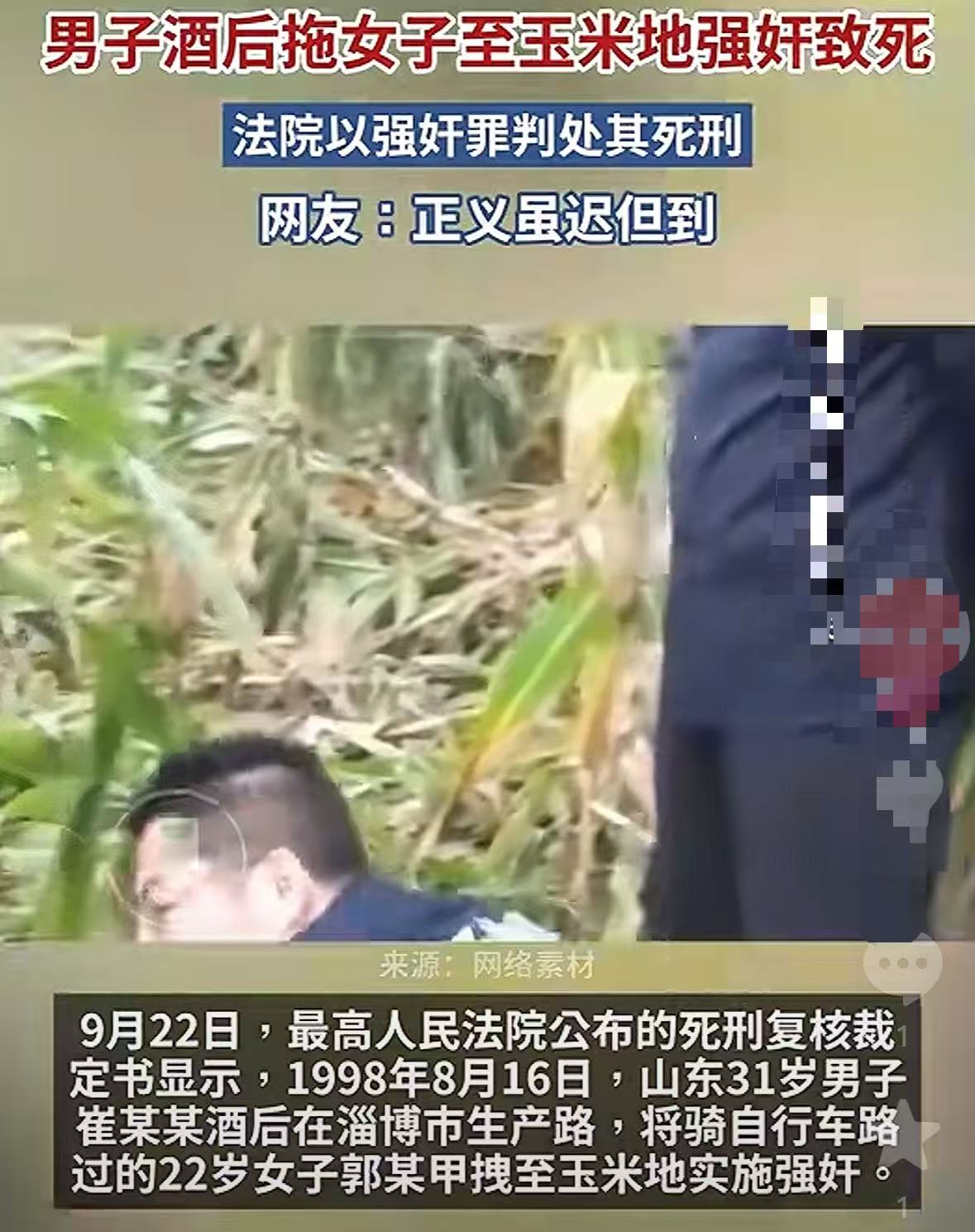 1998年8月的一个深夜,山东淄博一条寂静的生产路上,22岁的郭某甲骑着自行车回家。她不知道,黑暗中有一双眼睛已经盯上了她。31岁的崔某某酒后行至此处,见四下无人,顿生恶念。他冲上前去,将郭某甲从自行车上拽下,不顾其激烈反抗,强行将她拖入路边的玉米地中。