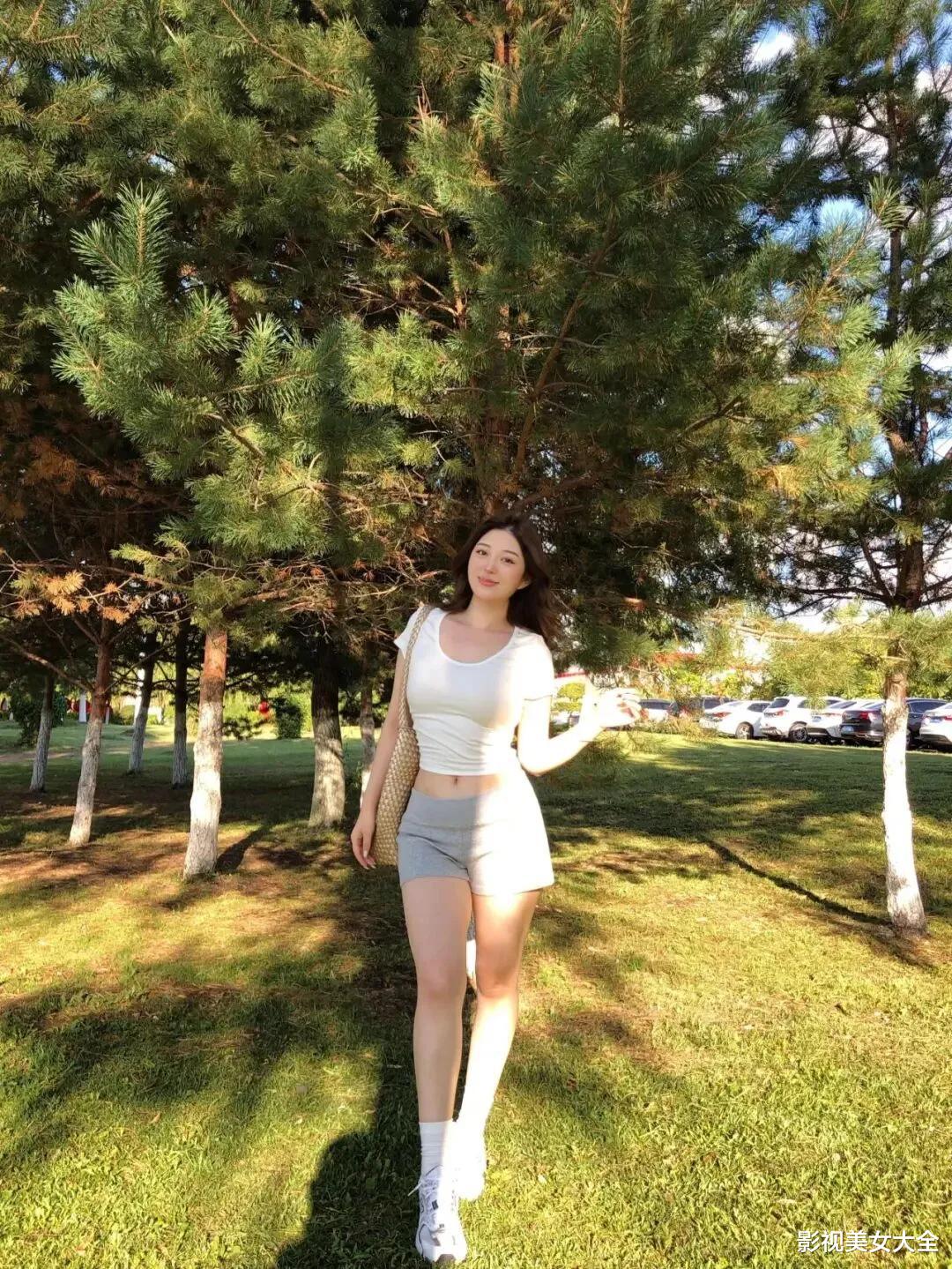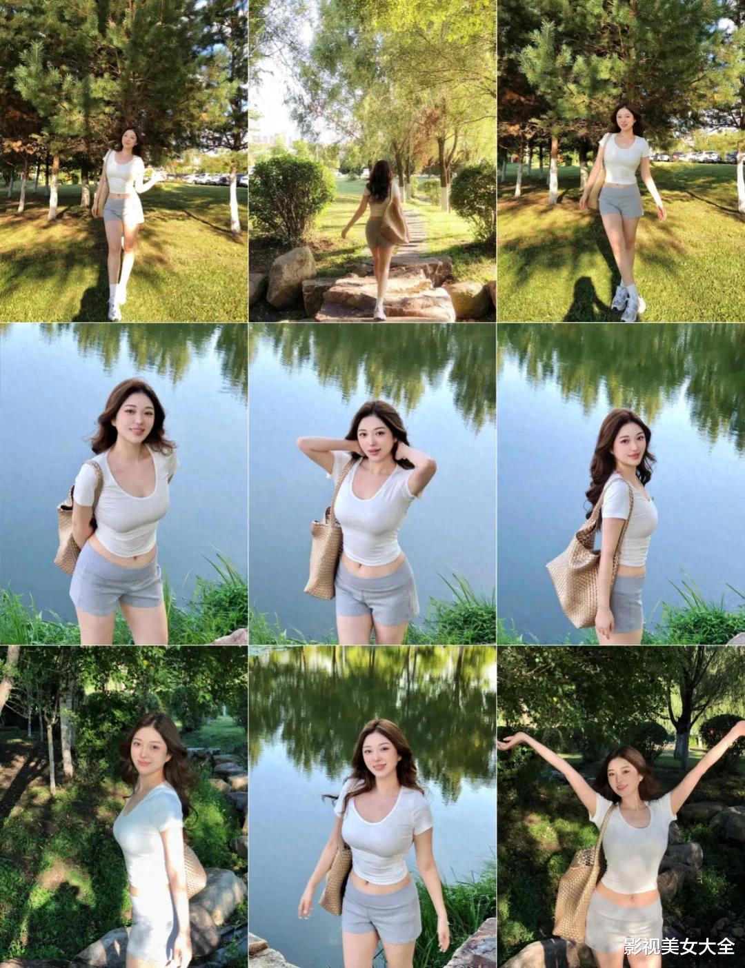想在公园拍好看大长腿、全身照的姐妹们,那就试试这个动作吧,让自己背对公园的树林,湖边、建筑等,摆拍一个单脚前跨的站姿,然后一手微抬歪头笑,显高显瘦又出片。