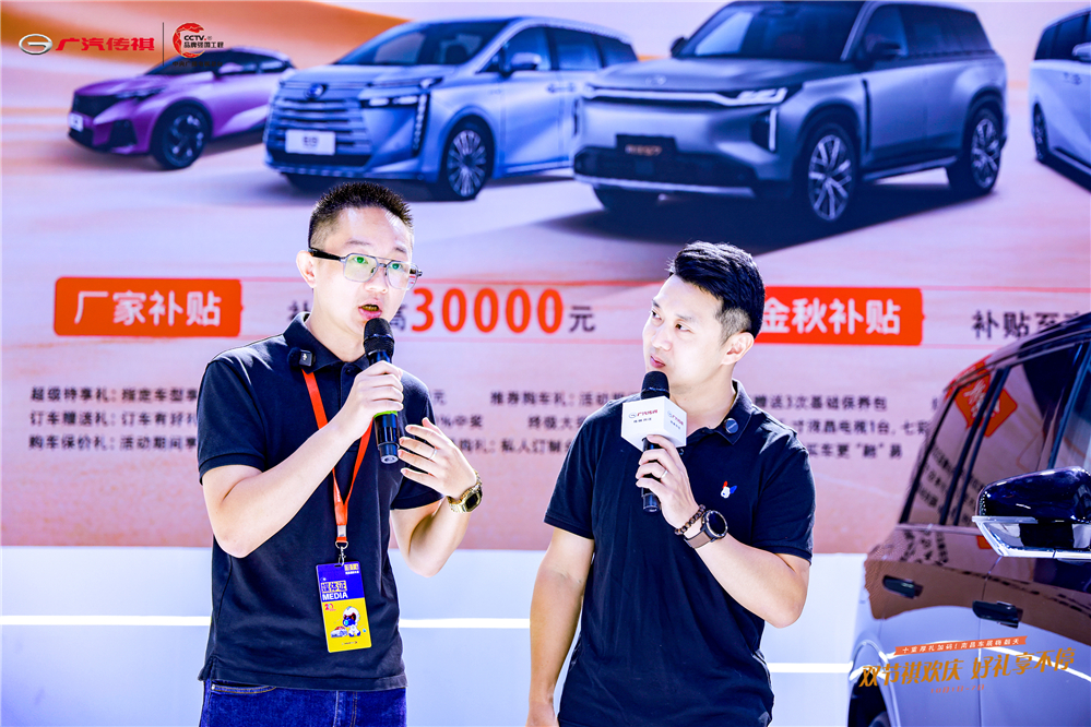 展会期间,传祺展台始终是南昌国际博览中心的“流量高地”——从上午9点开馆到下午5点闭馆,展台前的人流从未间断。扫码留资区前,观众排着小队领取定制帆布包,工作人员一边递礼品一边耐心解答“如何预约试驾”“置换补贴怎么申请”;洽谈区的6张桌子座无虚席,销售顾问们拿着车型手册和计算器,为一波又一波消费者讲解购车方案,连喝水的间隙都要小跑着回应新的咨询。不少路过的参展者被热闹的氛围吸引,纷纷探头询问:“这是什么车?看着人气好高!”