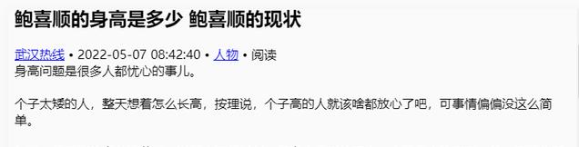 武汉热线——鲍喜顺的身高是多少 鲍喜顺的现状