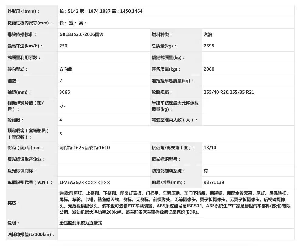 来到侧面,新车采用了隐藏式门把手,所以整个侧面显得非常简洁。黑化的密辐式轮圈,倒也展现出了很强的运动气息。尺寸方面,新车的长宽高分别为5142/1874(1887)/1450(1464)mm,轴距为3066mm。作为参考,现款车型为5050/1886/1475mm,轴距3024mm。