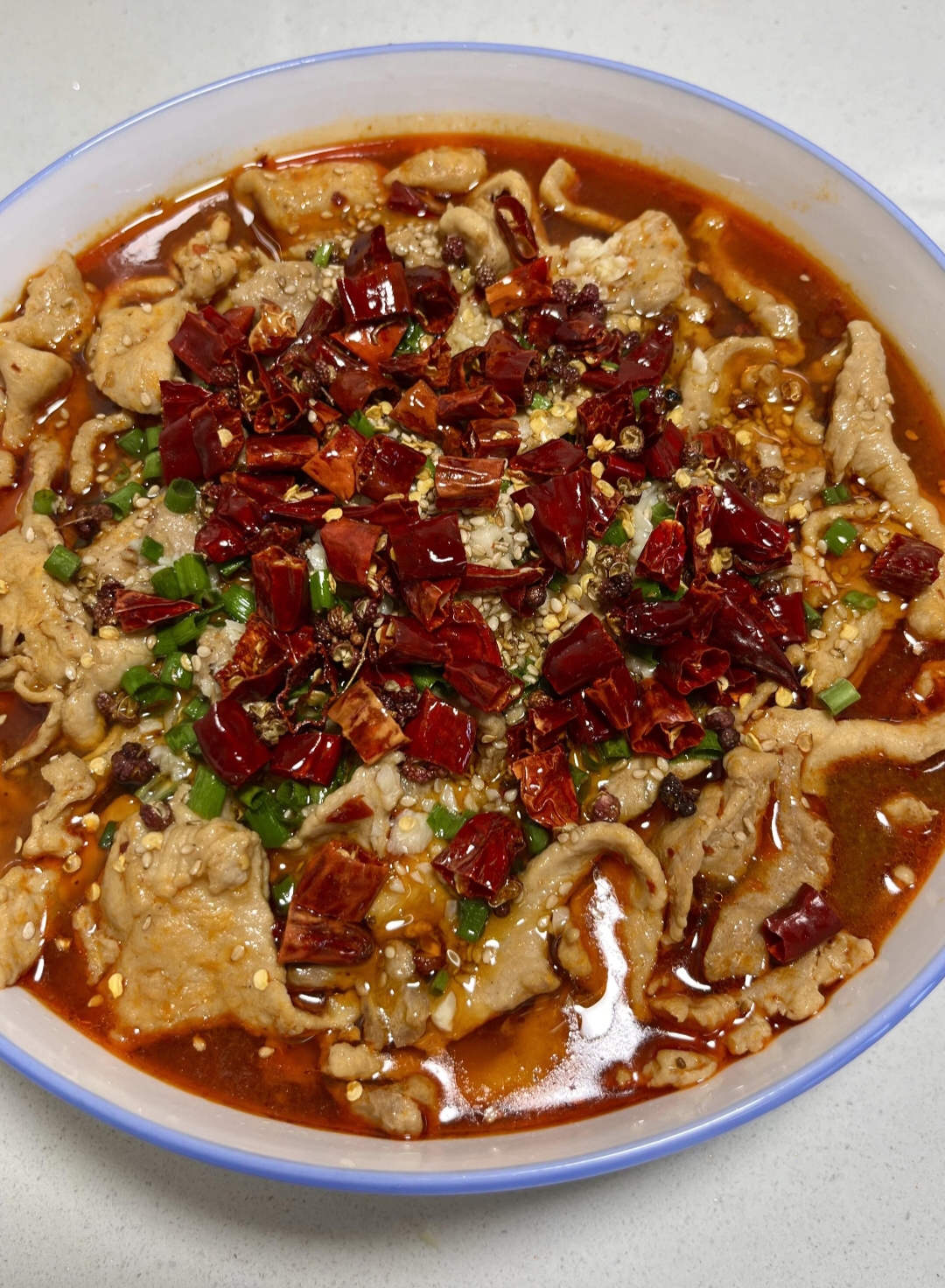 说起我和水煮肉片的缘分,始于一段“血泪史”。几年前,为了在朋友面前露一手,我雄心勃勃地挑战正宗做法。结果?手忙脚乱,香料铺了一桌,炒酱时还被溅起的油花吓得举锅盖“防御”。最后的成品,肉片老如鞋底,味道只剩下死辣,妥妥的大型翻车现场。
