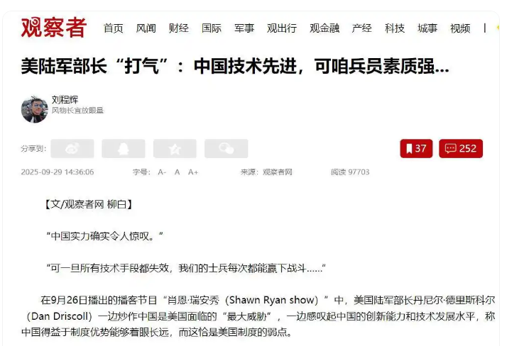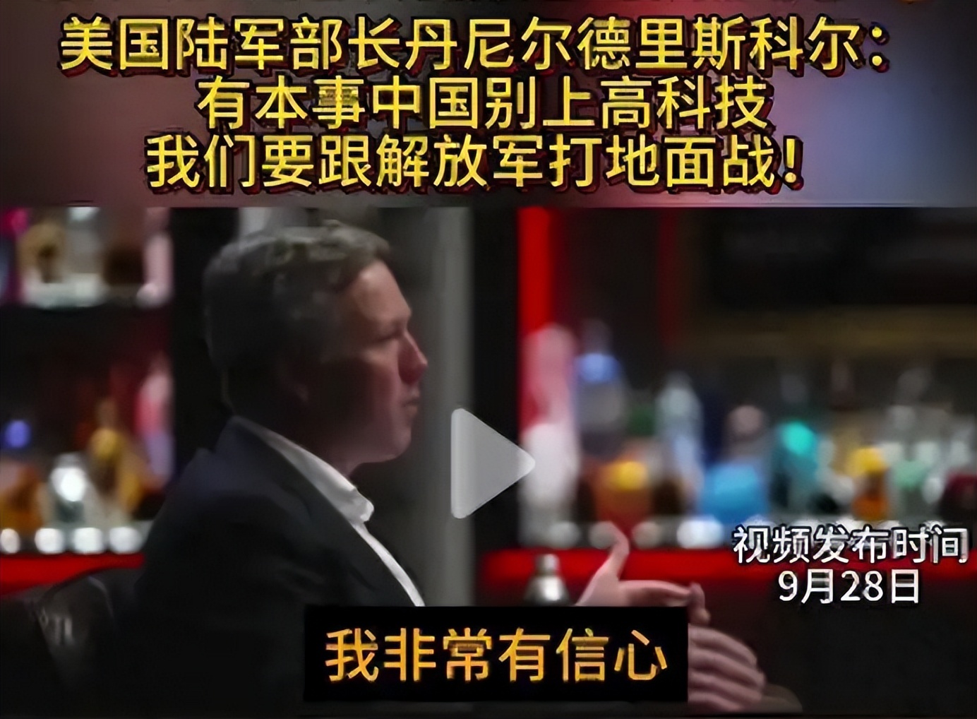9月28日,美陆军部长德里斯科尔在公开节目中,居然罕见的公开承认:解放军的装备技术已经在大部分领域领先美军了。但是,他话锋一转,竟然说:“地面战争拼的是意志,美军官兵有钢铁意志,一定能赢。