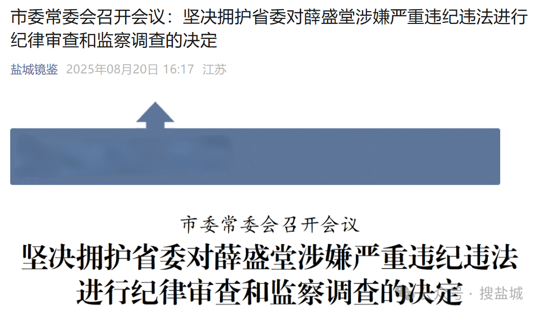 薛盛堂被查,不是孤立事件。就在8月8日,盐城市政府党组成员、秘书长徐宁建也因涉嫌严重违纪违法被查。两人曾长期在建湖县共事,形成紧密的工作关系。短短半个月内,市委秘书长与市政府秘书长相继落马,暴露出当地政治生态中可能存在的系统性风险。