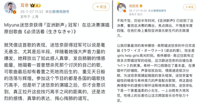 虽然《亚洲新声》已经正式收官啦,但大家觉得不尽兴的话,还是可以二刷一下整季节目,感受迷悠奈这一路她从惊艳炸场到最终“封王”,是如何用实力和歌声征服大家的!还有其他新声歌手的每一个精彩瞬间,感受那份属于音乐的纯粹与美好。