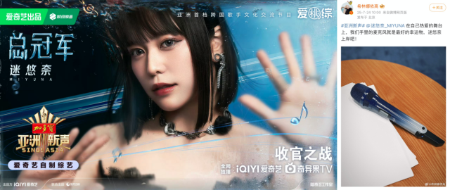 首先让我们恭喜,新声歌手迷悠奈加冕加多宝《亚洲新声》年度总冠军!总决赛夜迷悠奈的帮唱嘉宾希林娜依·高也曾发文祝福她成功“上岸”,话说这个希林到底是什么“帮唱锦鲤”体质啊!