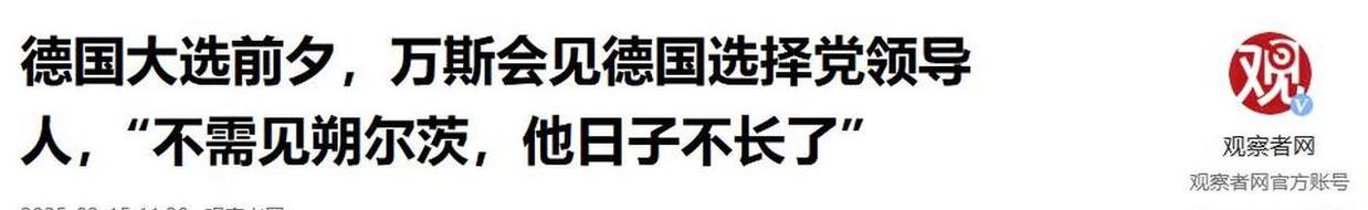 国际社会也表达了对魏德尔的支持,她与特朗普的观点不谋而合,都主张尽快结束俄乌冲突,所以特朗普团队对她表示赞赏。全球首富马斯克视频连线力挺选择党,美国副总统万斯更是直接会见了魏德尔,越过朔尔茨进行沟通。马斯克和万斯的举动,清楚地表明了美国方面的立场,为魏德尔撑腰。