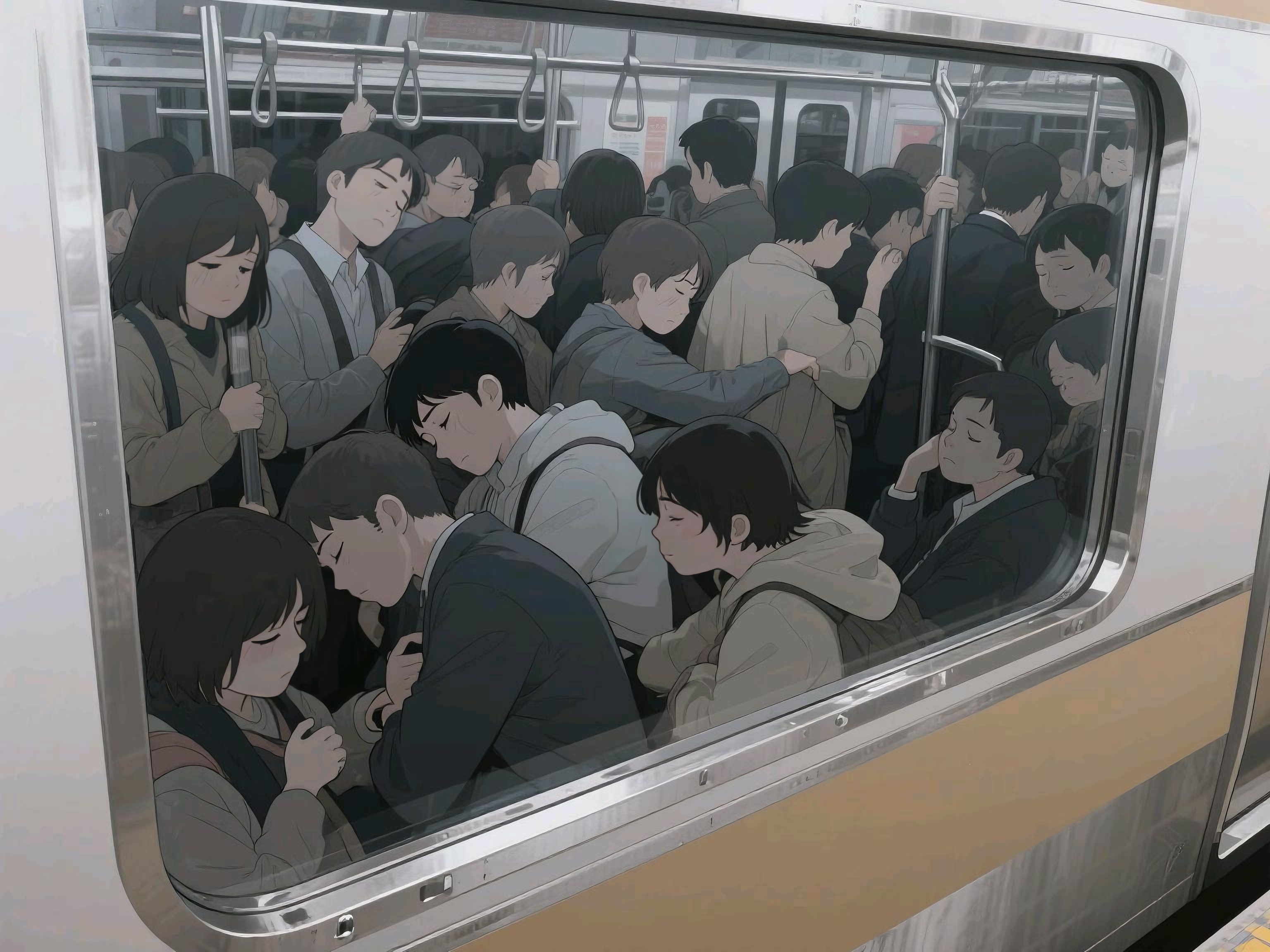 车厢挤得几乎要爆炸,前胸贴后背,双脚悬空,每一次呼吸都像在争夺稀缺资源。后头的人还在不断涌来,一波又一波的压力推搡着,挤压着。一股无名火“噌”地窜上脑门,积蓄了一天的烦躁终于冲垮了堤坝,我几乎是发泄般,猛地晃动了一下身体。