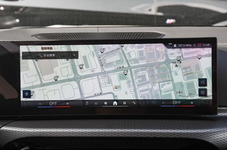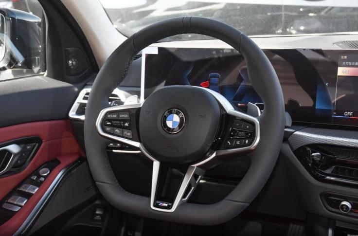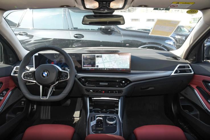 内饰中,宝马330Li M运动曜夜套装采用了辨识度较高的曲面双联屏组合设计,12.3英寸液晶仪表和14.9英寸中控屏作为前排核心亮点,画面细腻感出色,UI界面设计简约清爽,特别是在夜间氛围灯的映衬下,视觉冲击力较强。不过,iDrive 8.5车机系统流畅度虽然值得称赞,并且支持语音控制和手势控制,但车机限制较多,夏季发热量较大,且无法安装第三方应用,界面也偶尔出现卡顿,可玩性不及主流新能源车。