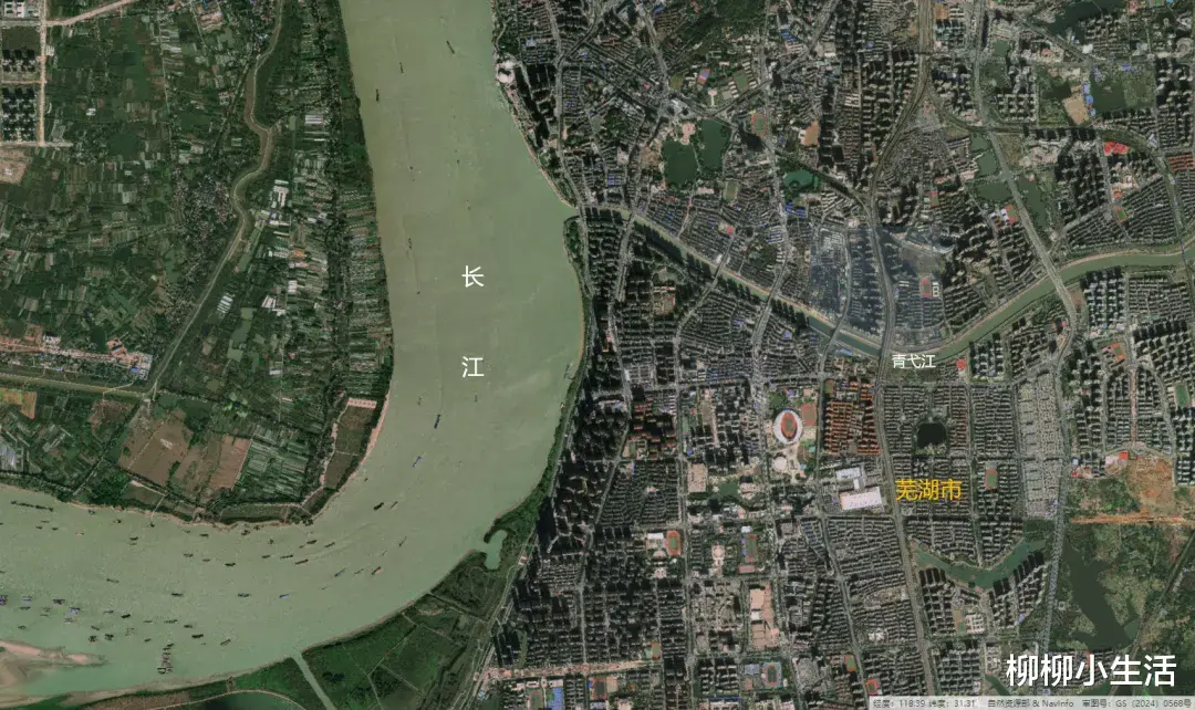 ▲长江下游水势浩瀚,河道宽阔,支流反而很小,因此形成了鲜明的对比。哪怕是最长的青弋江看着都像小水沟。