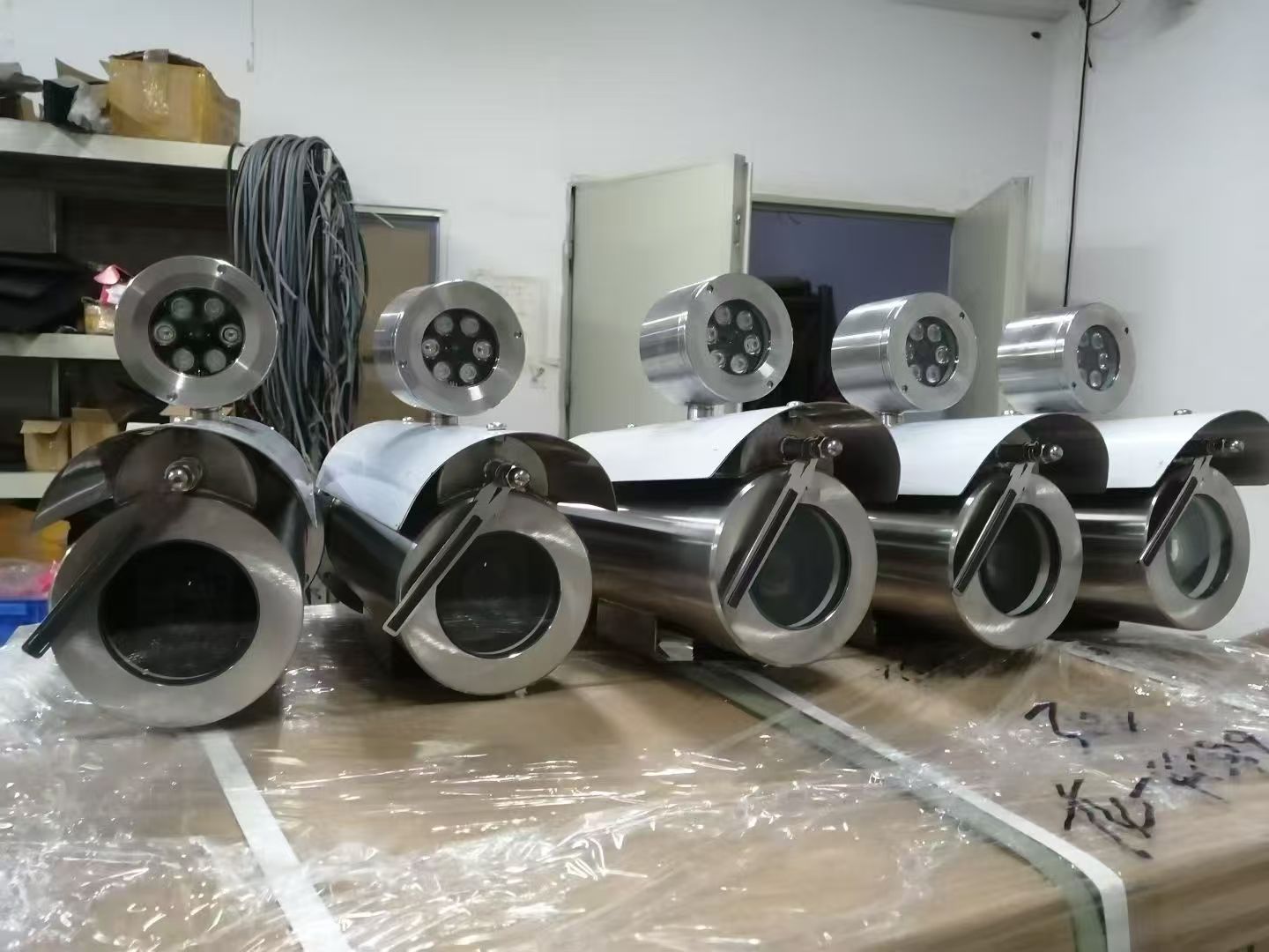 红外灯寿命受温度影响大,发热量大的红外灯会导致防爆红外摄像机前部热量集中,影响其他部件工作。如50颗¢5的红外灯板长时间运行,LED板温度可达90度左右。不规范厂家加大电流提高照射效果,但会导致LED过热受损,CMOS首当其冲。深圳容方红外一体机采用恒定电流电源供电,保持红外灯电流恒定,减少发热;选用铝合金等散热材料,确保红外灯开启时长期运行温度不高于50度,寿命可达30000小时以上。