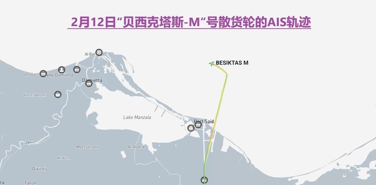 “贝西克塔斯-M”号最终目的地说法不一,有人说是巴拿马籍散货船,战区和海军新闻网也这么报道。巨轮“贝西克塔斯-M”号,身长188.5米,离开约旦亚喀巴后直奔黑海,目的地据说是罗马尼亚康斯坦察港。土耳其海事局二月十四号消息,一艘名为“贝西克塔斯-M”号的货船,满载五万四千吨小麦,正从约旦阿卡巴港驶往埃及亚历山大港。