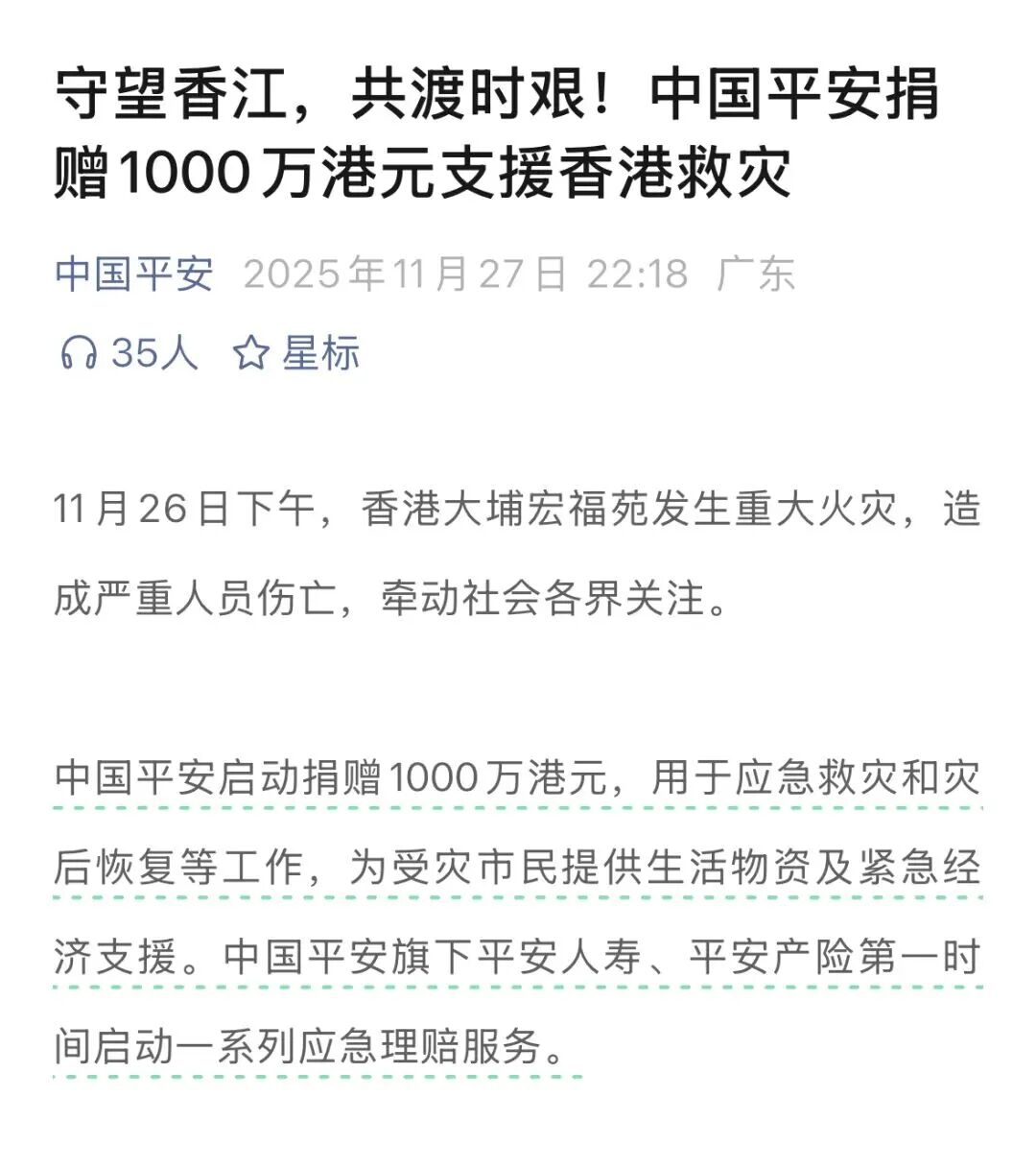 阳光保险集团紧急捐赠1000万港元,驰援香港大埔火灾应急救援。