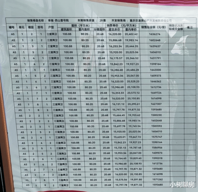 小树在售楼部转了一圈,在一个角落发现了项目售价表,直接把我惊呆了。