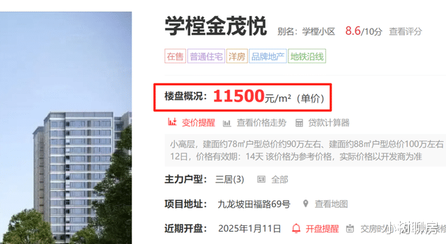 而一街之隔的学樘金茂悦,目前对外释放的价格也就建面11500元/平,实际打折下来也就建面一万左右。