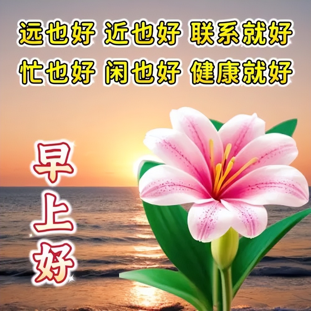 太阳无声,全球明;花开无声,四季景;文字无声,道真情;惦记无声,暖心灵;祝福无声,是真诚。晨早,是一束美丽的鲜花;牵挂,是一种情感的升华。送上我的祝福,寄去我的牵挂!愿我们都平安健康。早上好!