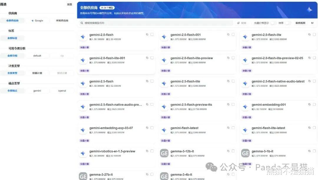 通常来说这类第三方网站的token会是官网的3-6折,根据模型的热度和质量而定。在计费方式上会有按次和按量两种方式,一般来说生成类模型熊猫建议是按次,文本或向量这类模型建议按Toekns来计算。