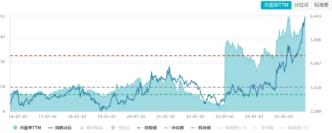 我看了眼科技板块指数,目前市盈率是51倍,确实是近十年以来的历史最高区间...