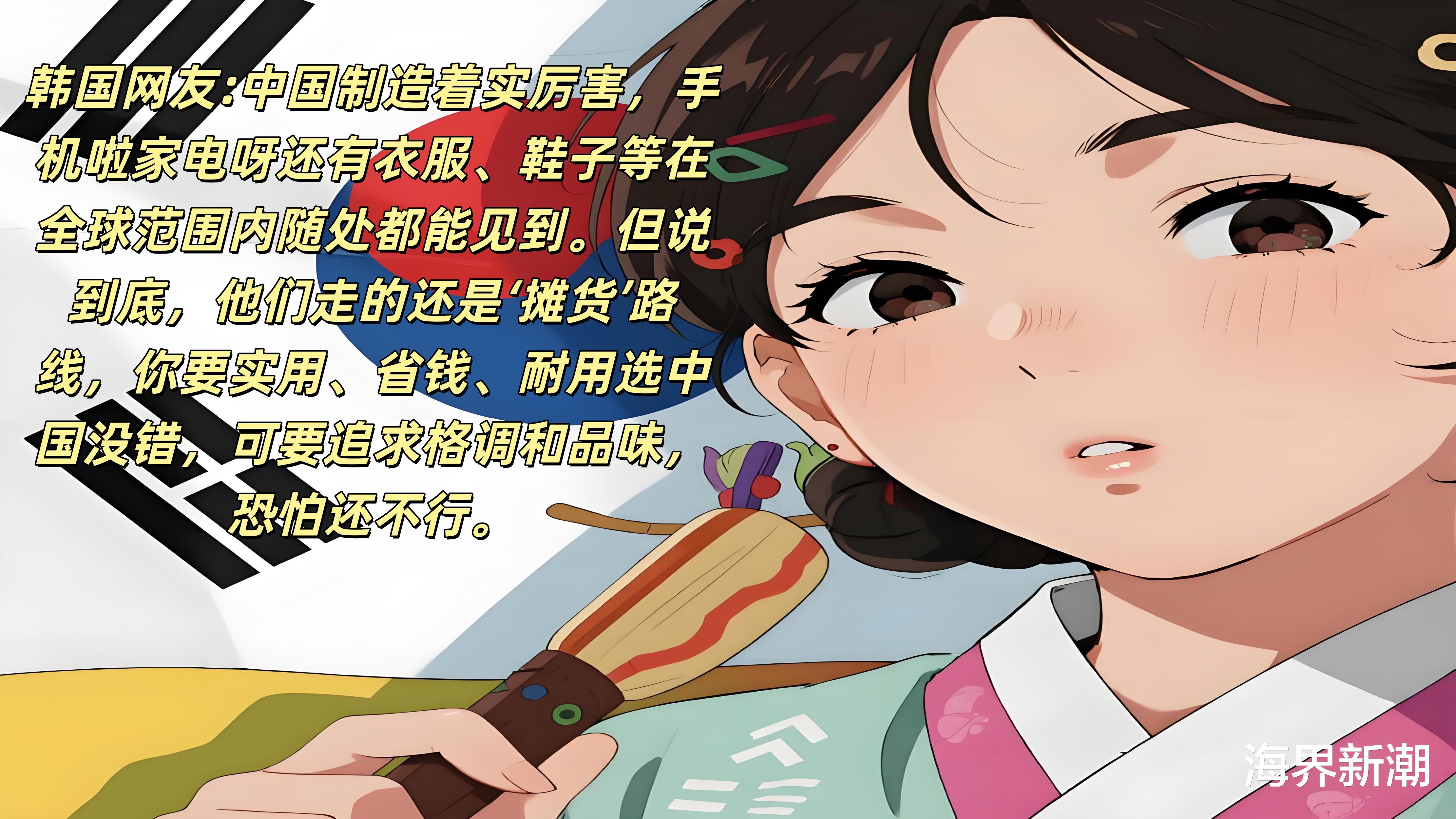 一位韩国网友的回复,带着些许优越感,却也直白得让人难以辩驳:“中国制造着实厉害,手机啦家电呀还有衣服、鞋子等在全球范围内随处都能见到。但说到底,他们走的还是‘摊货’路线,你要实用、省钱、耐用选中国没错,可要追求格调和品味,恐怕还不行。”