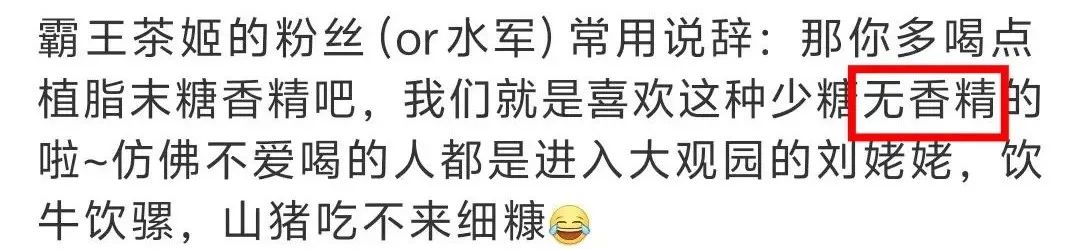 有的人感觉好像喝出香精了,于是他们选择,怀疑自己的舌头,怀疑自己年纪大了,但不怀疑霸王茶姬里有香精。