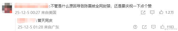 而陈震全网社媒账号被封后,有不少网友前往其微博下留言“庆祝”。