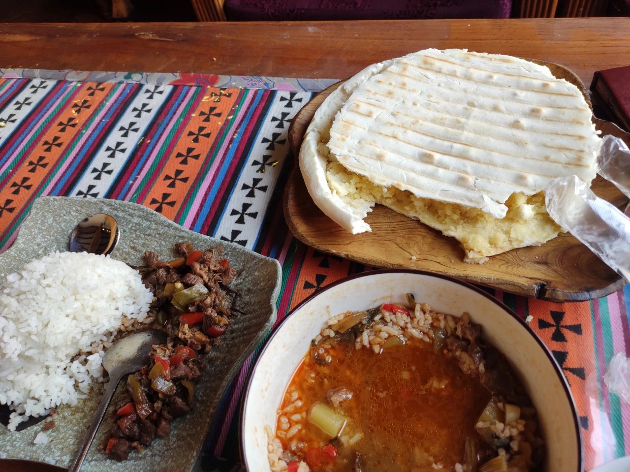 ②八宝藏餐 这家店强推,真的贼好吃。我去店里吃了酥油饼,洋芋汤饭,牛肉盖饭和牛肉包子。都挺好吃的,大家冲。