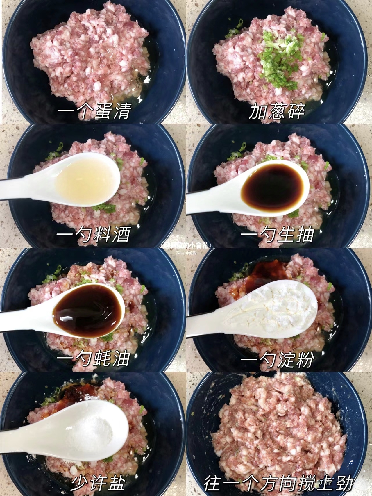 接下来是调料的准备。准备适量的生抽,生抽是给肉馅提鲜和增加咸味的重要调料。再加入一些蚝油,蚝油能让肉馅的味道更加浓郁醇厚。少许的料酒是必不可少的,它可以去腥增香。还需要一些盐,根据个人口味加入适量的白糖提鲜。最后准备一些淀粉,淀粉能让肉馅更加紧实,吃起来口感更好。