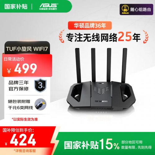 预算有限?TUF小旋风WiFi7凭借预估最低仅需424元的到手价,证明“物美价廉”。它搭载2.5G高速端口,轻松应对2000兆宽带,也可作为LAN,在设备间高速传输。这样的配置完全可以满足普通家庭需求。重点是,这款路由配备了博通四核2.0G处理器,搭配DDR4 1GB超大内存,无论是日常网页浏览的流畅体验,还是多设备同时在线的复杂网络环境,均可游刃有余地应对。在散热方面,它参考了无人机设计,铝制散热片+纳米碳涂层+5面散热孔,实现高效降温,全天侯待机更稳定。