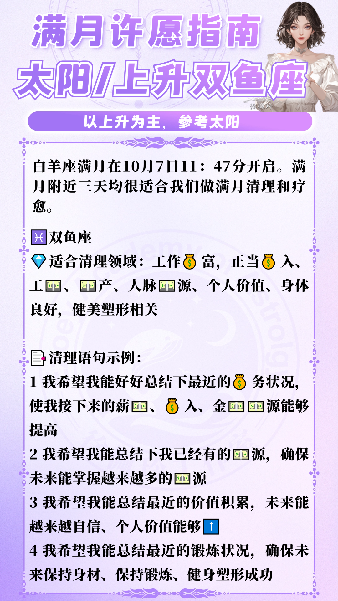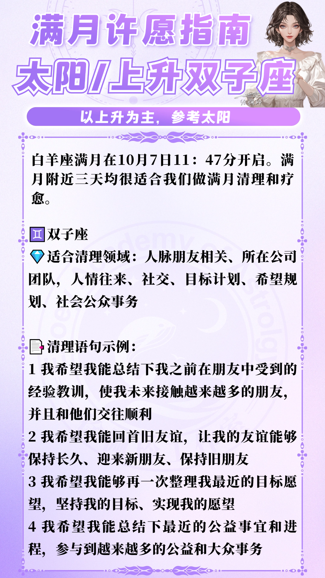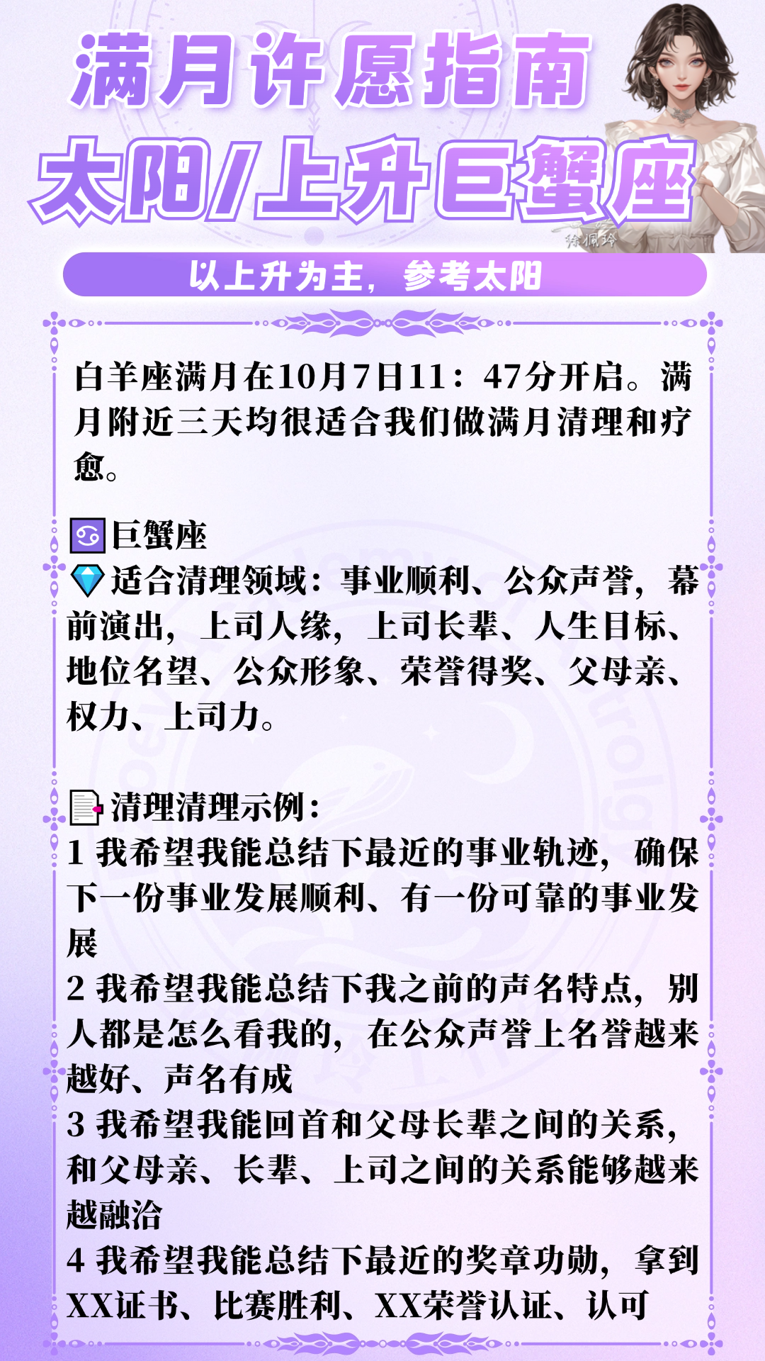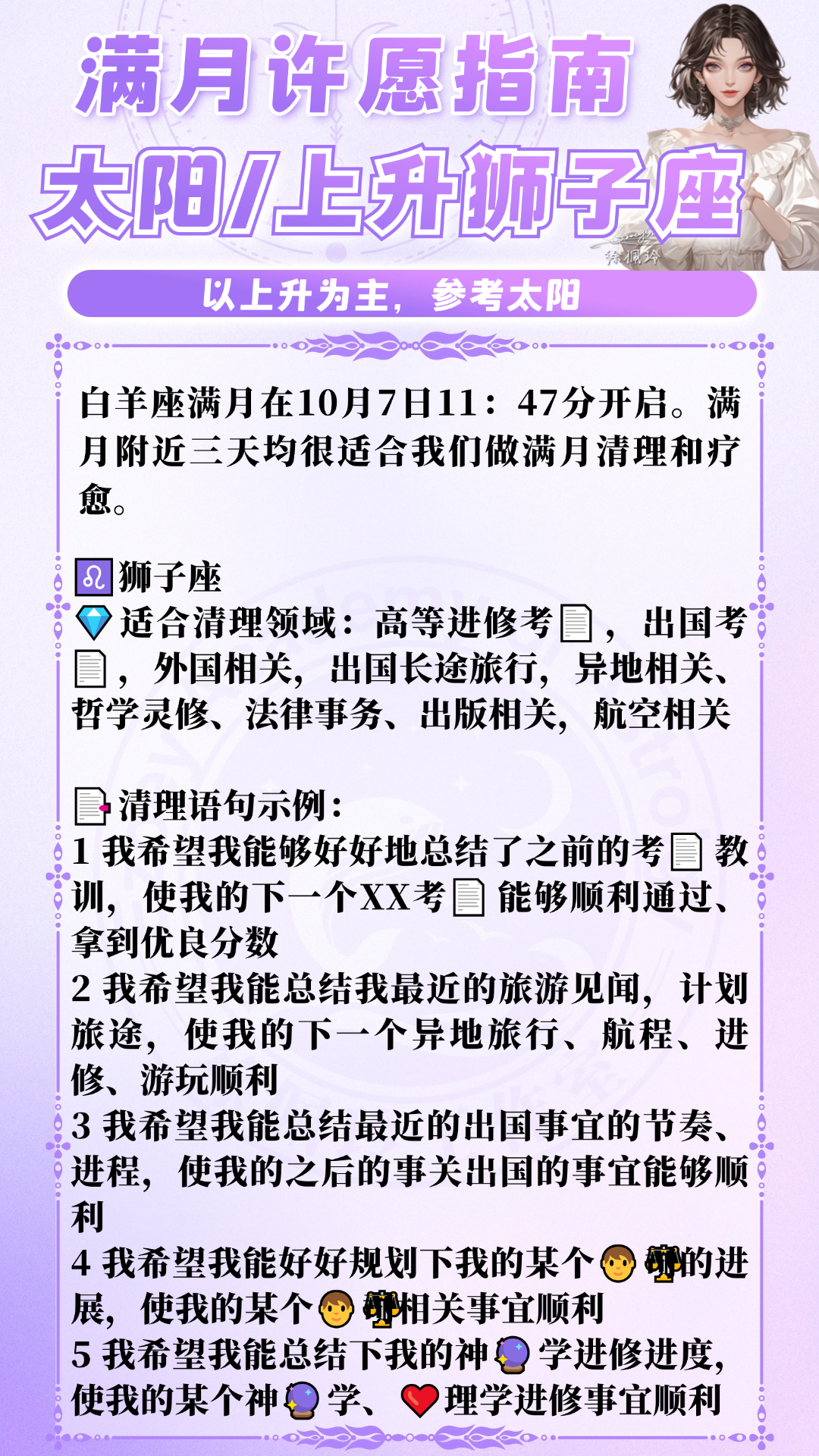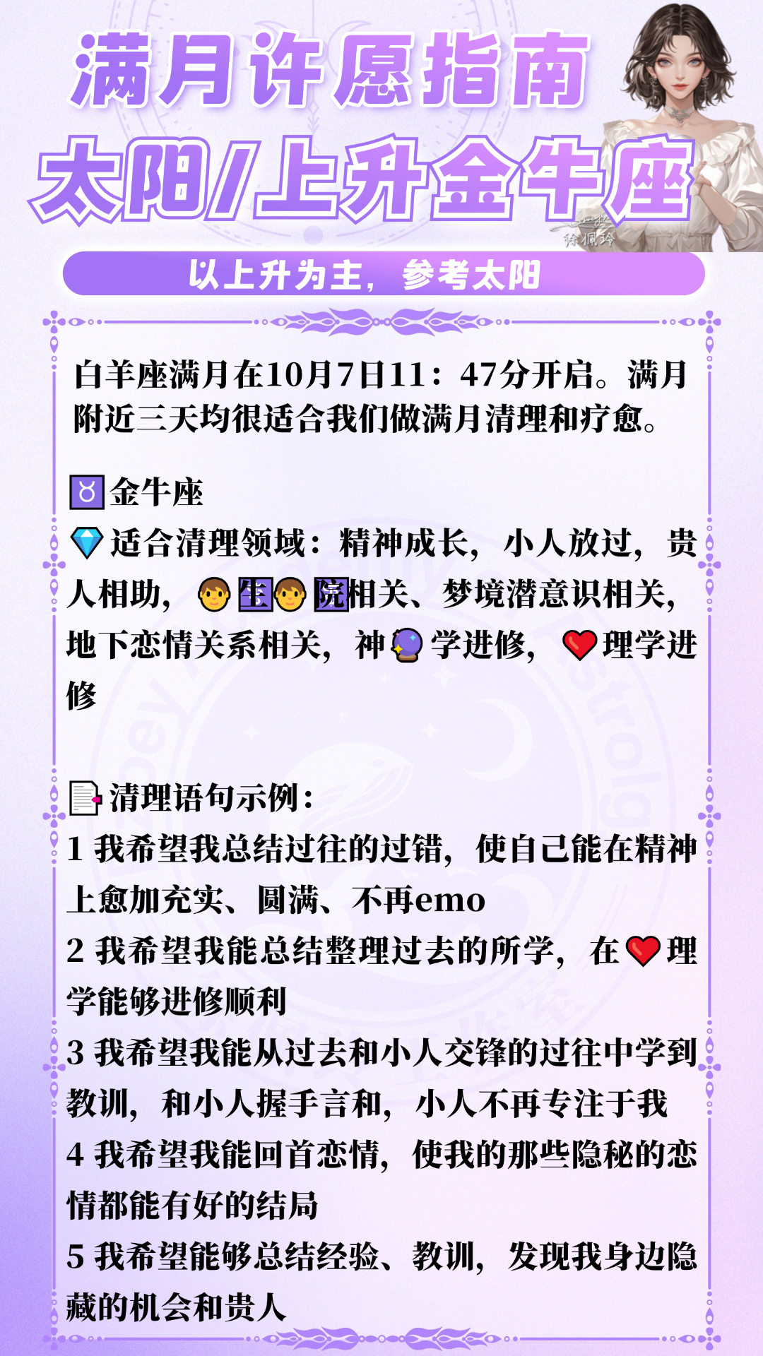 此次满月,具体12星座可许愿和复盘的领域如下: