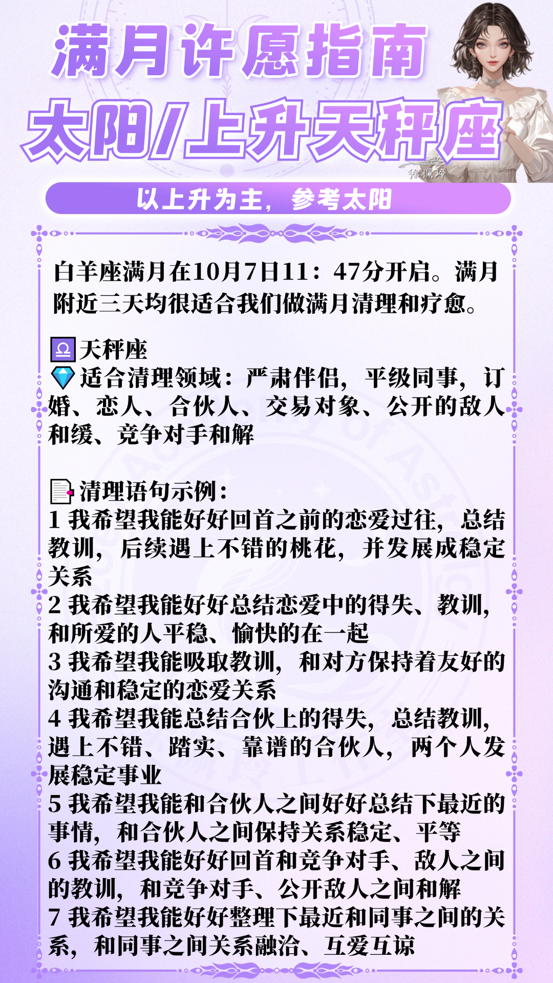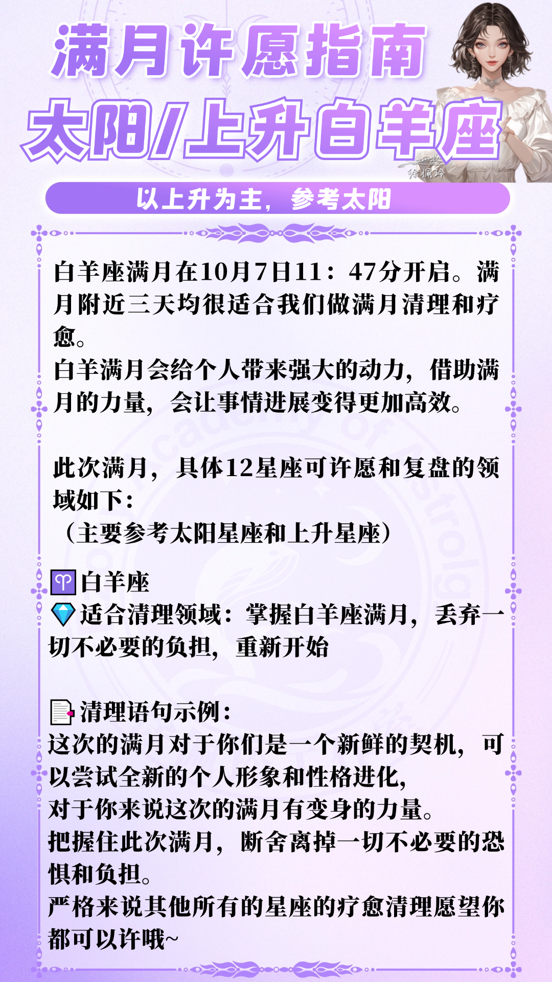 白羊座满月在10月7日11:47分开启。满月附近三天均很适合我们做满月清理和疗愈。