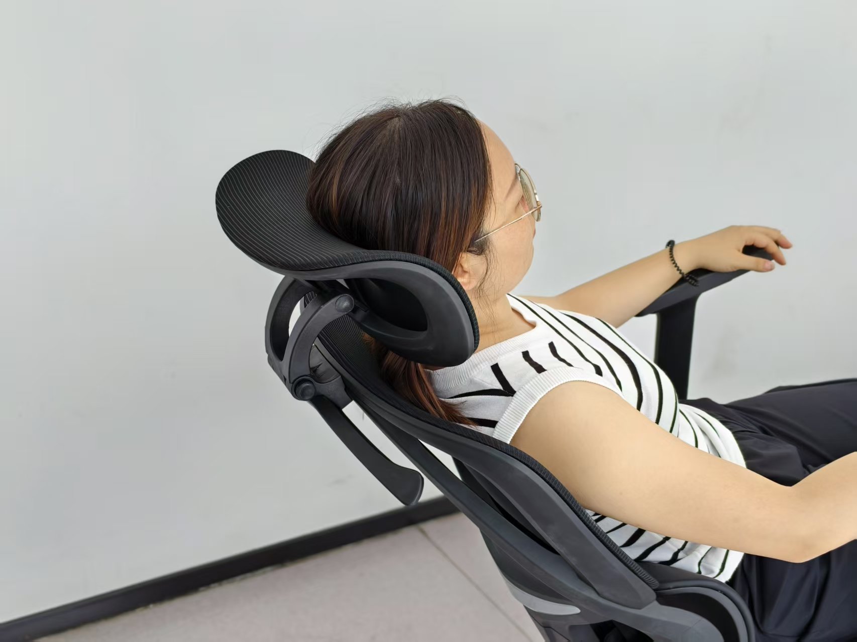 它采用六区分压追腰系统技术,左中右三个浮动腰撑通过多维姿态感应机构实时捕捉腰背状态。 当我正坐办公时,腰靠自动前顶填补腰椎空隙;侧身拿东西时,左侧浮翼随腰部移动贴合;后仰休息时,整个腰靠系统柔性伸缩,始终保持均匀承托。
